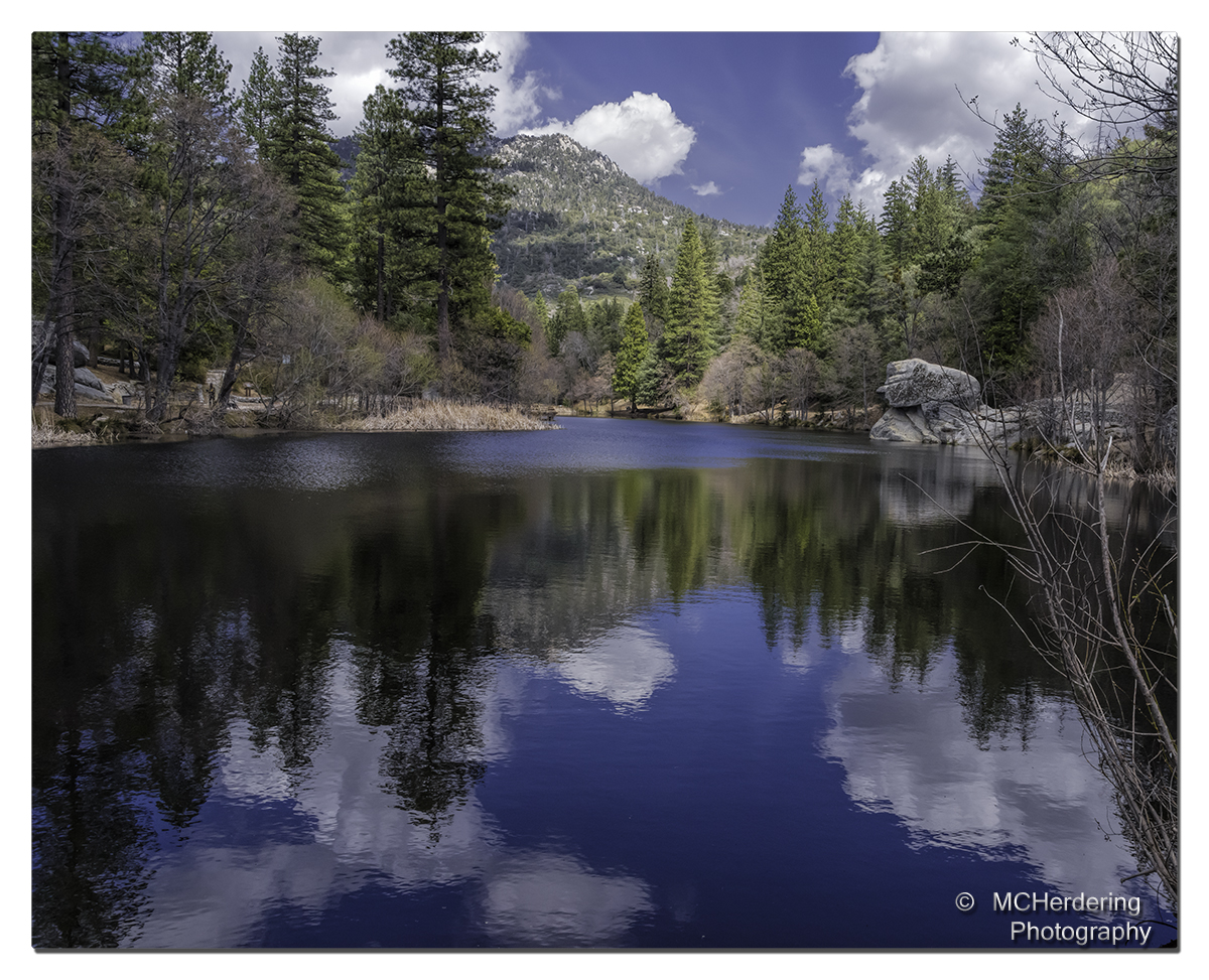 Nearly eight months after storms tore it apart on February 14th, California 243, the most direct route, from Los Angeles county, to the popular hiking trails of Idyllwild, reopened November 1, 2019. This view, of Lake Fulmore, taken in March, 2019, is once again relatively easy to see again.