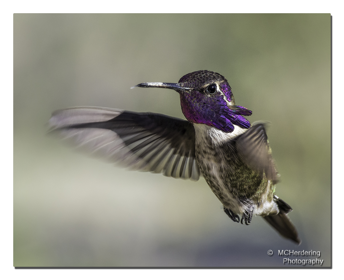 The Costa's Hummingbird is rare in my area. I encountered this one on a trip to Anza Borrego in March, 2017. He was quite elusive, but in this case, my patience paid off. He's a handsome bird.